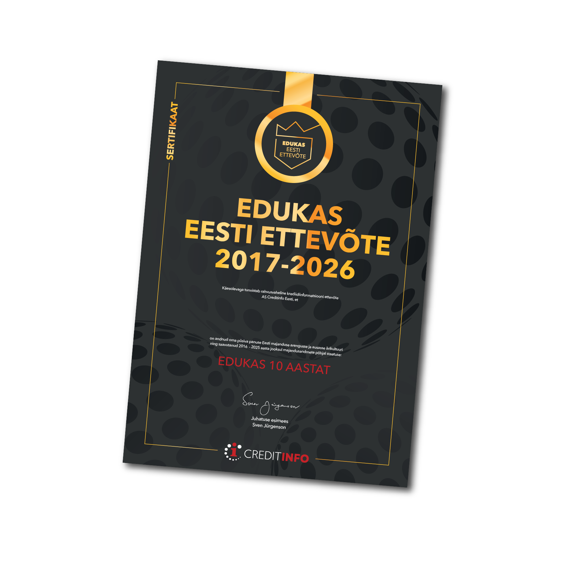 Многолетний диплом подтверждает, что компания соответствовала критериям «Успешного предприятия Эстонии» на протяжении нескольких последовательных лет.